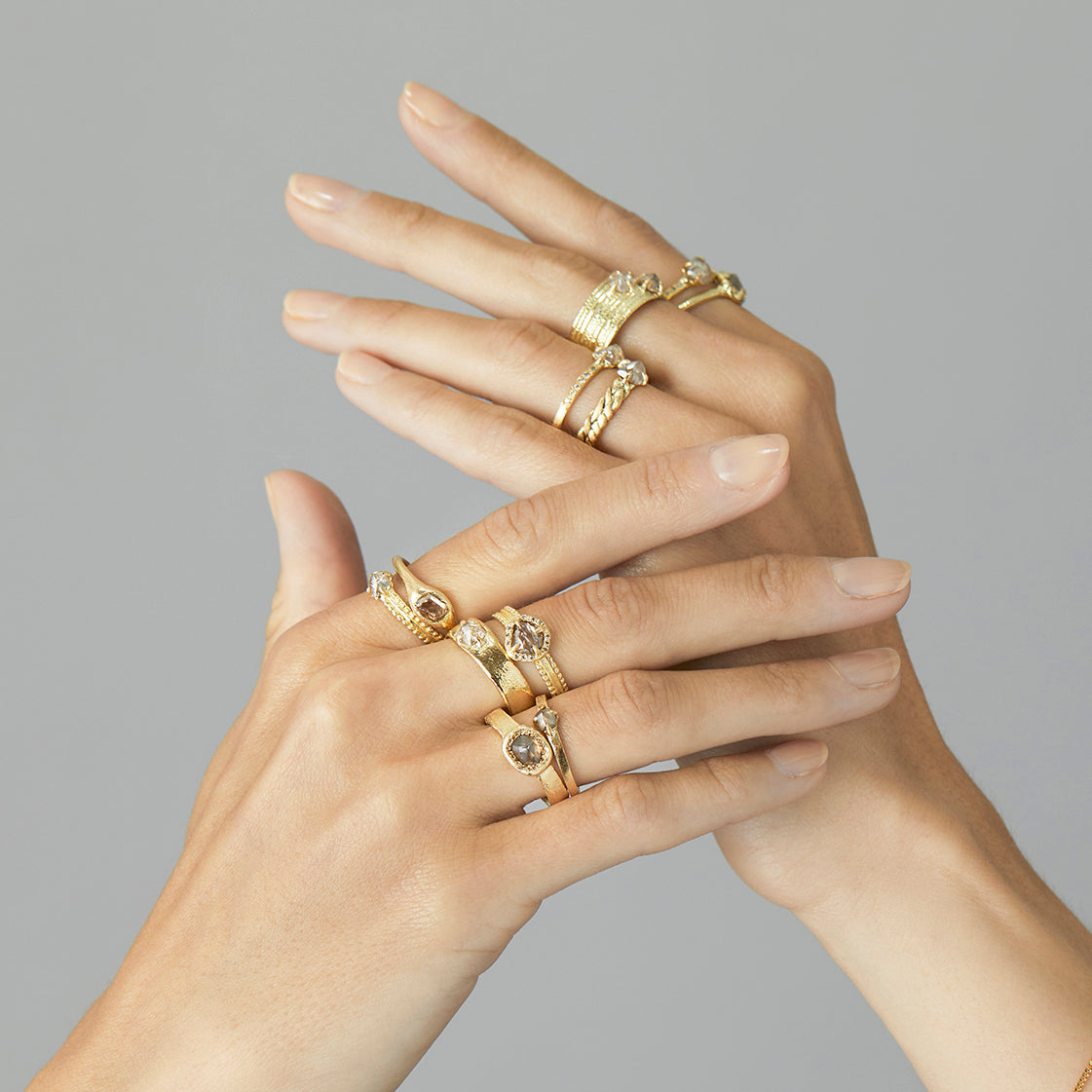 Satomi Kawakita Jewelry proudly celebrated its 15th anniversary in 2023. To commemorate this momentous occasion, Satomi designed a truly exceptional One-of-a-Kind Collection of 15 unique rings, each adorned with exceptionally rare and difficult-to-source diamonds. These rings boast handmade designs that pay homage to Satomi's earlier organic creations, adding a touch of timeless elegance to this special collection.